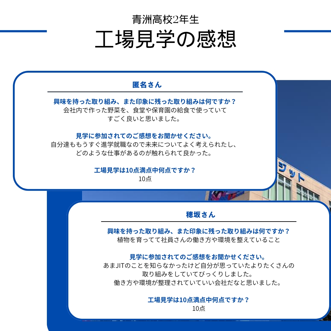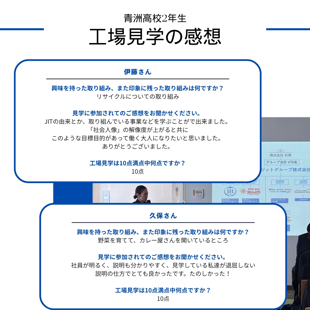 今後もジットグループでは、次世代を担う学生の皆さまとの交流を大切にし、工場見学を通じて学びの機会を提供してまいります。