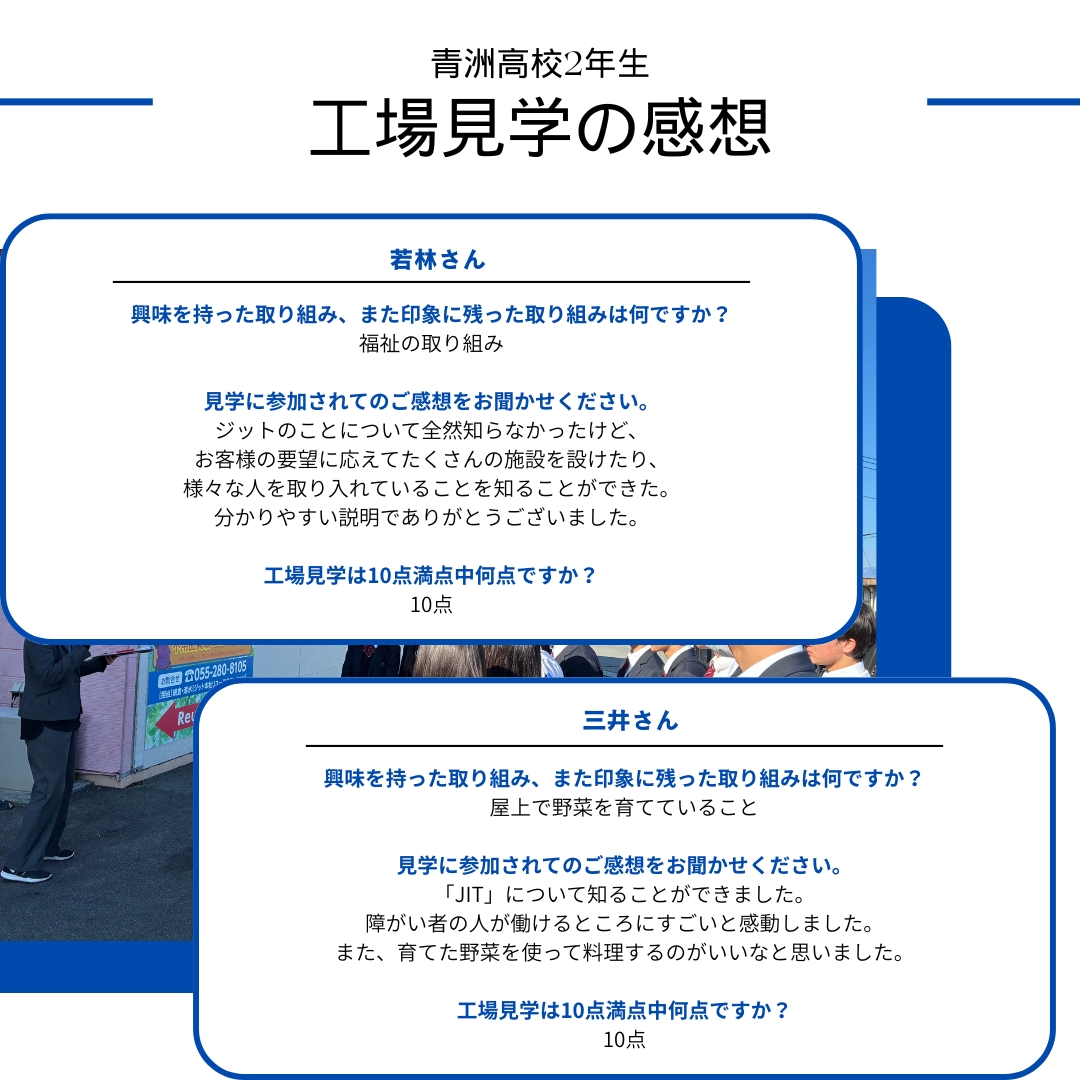 山梨県立青洲高等学校2年生約122名の皆さまが、キャリア学習の一環としてジットグループの工場見学に来社されました。