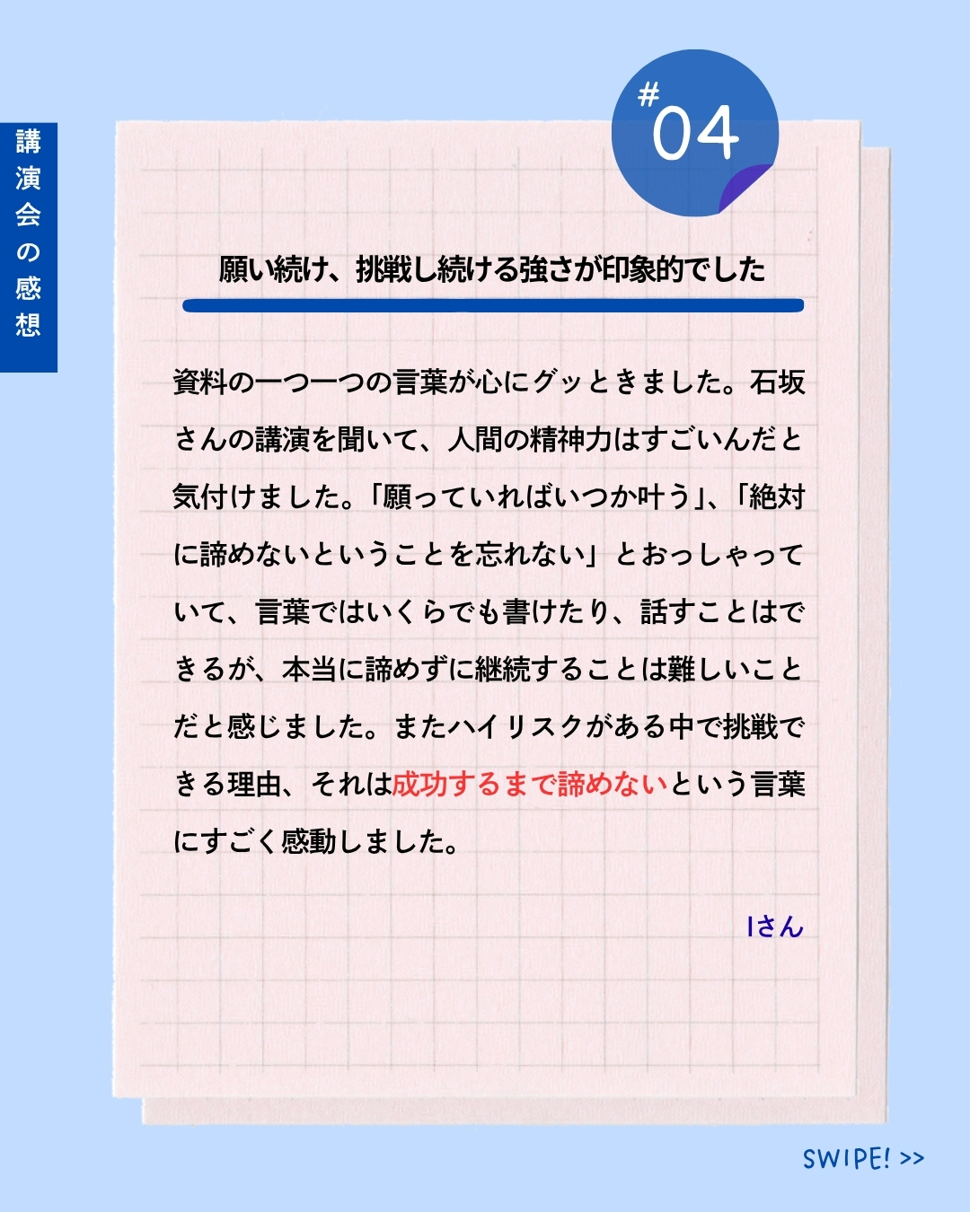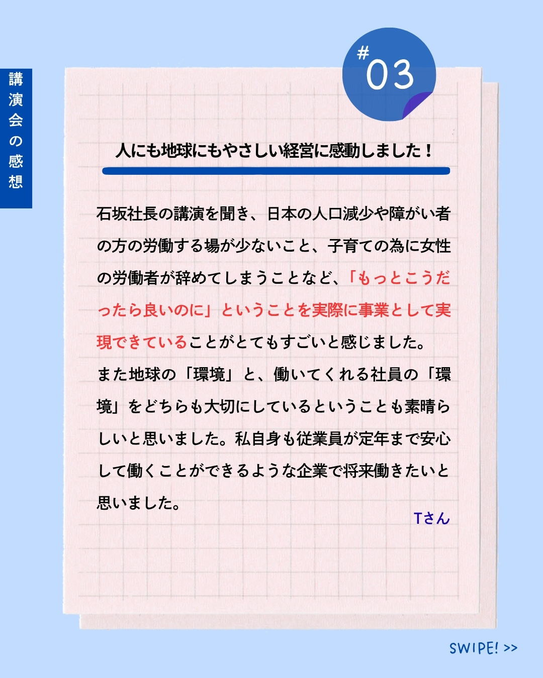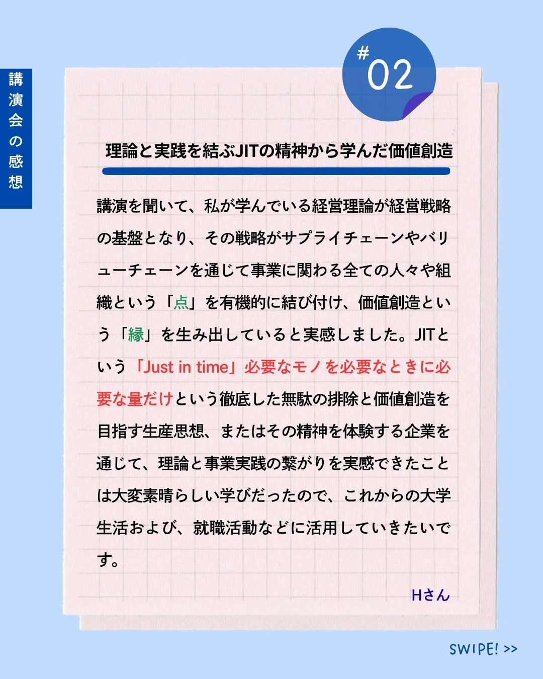 講演後には、参加された学生の皆さまから次のような感想をいただきました。